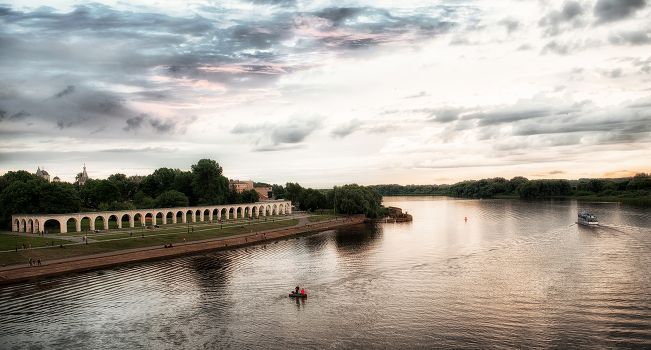 Река Волхов. Ярославово дворище и торговые ряды.