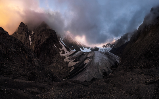 Закатный вид на ледник Большой Актру.