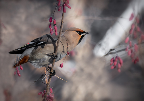 свиристель на барбарисе..