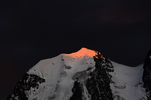 Волшебный блик заходящего солнца на вершине горы Сказка (3500 м). Алтай. Шавлинские озера начало сентября.
