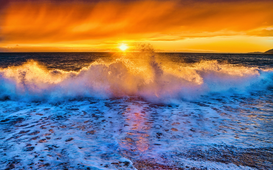 Вечерняя волна в багровых тонах.
