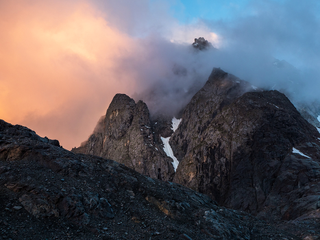 Драматичный закат у ледника Актру. Алтай.