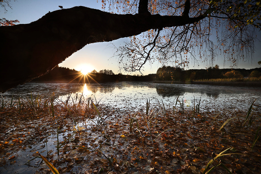 осень, озеро, закат