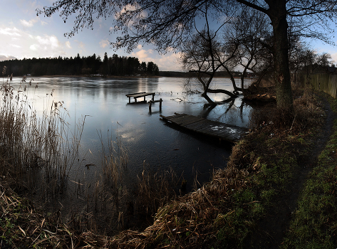 небо отражается в зеркале первого льда, январь 2020