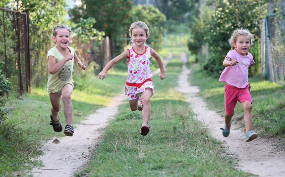 летние каникулы. дача. дети играют в олимпийские игры