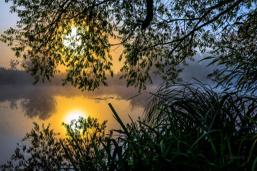 Солнце за ивой.