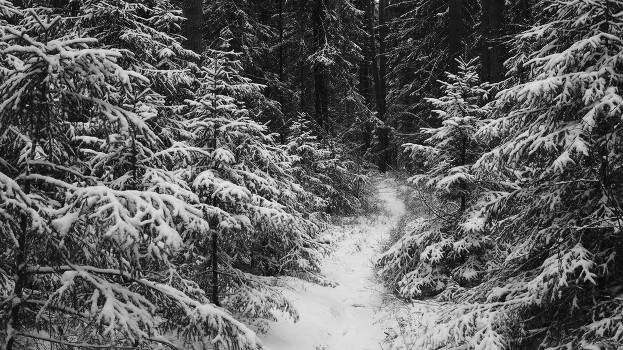 По заснеженным тропкам.