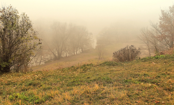 Туман на высоком берегу реки