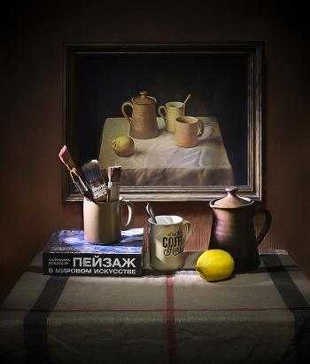 чашки, чайник, картина, натюрморт