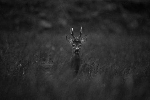 Конец мая. Самец косули на некошеном лугу встал в полный рост. До этого момента они вместе с самкой перемещались исключительно на коленях.