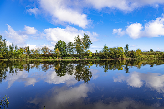 В реку смотрятся облака