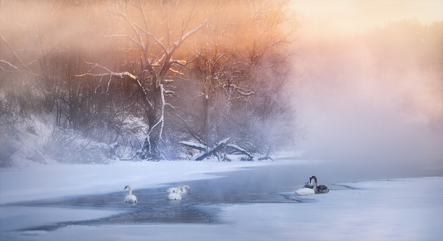 Вынужденная зимовка лебедей на р.Упа. -30
