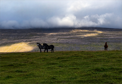 Спускающийся с гор туман гнал лошадей в низину. Заметив нас они резко остановились и стали принюхиваться, даже слышно было как они фырчат.