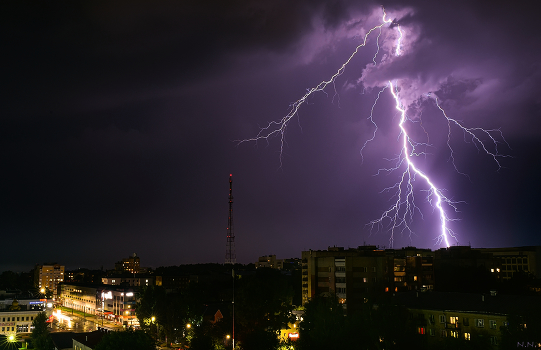 ночная съемка молний в грозу