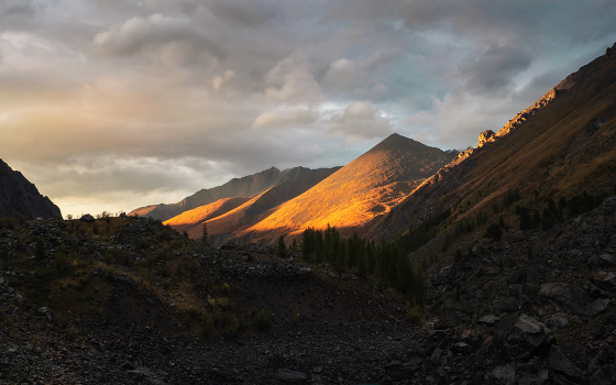 Золотой осенний вечер на Шавлинских озерах. Алтай.