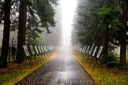 Художественная выставка в осеннем лесу
