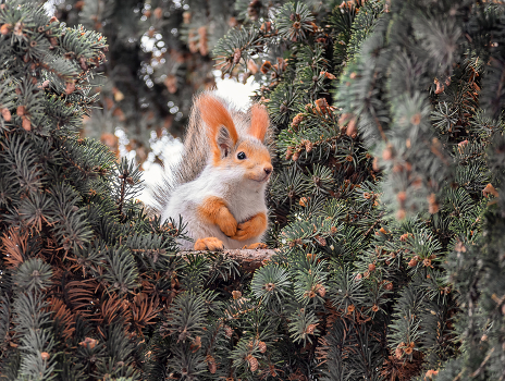 милый зверёныш с другими белками освобождали ель от шишек.. быстро управились.. )