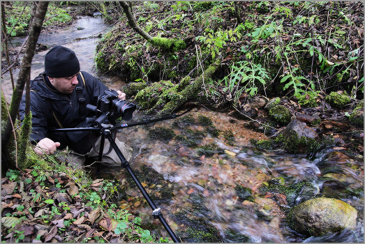 ручей у реки Вяча. В поисках нужного ракурса сидит в воде лицо клуба Алексей Матюш - http://matiush.photoclub.by/