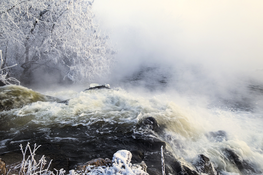 Бурные воды незамерзающей реки