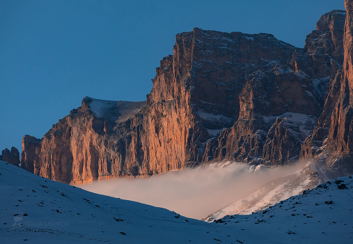 Скалистый хребет (высотой до 2700 м.) недалеко от село Былым в Баксанской долине. Кабардино-Балкария. Декабрь, 2021 г. Из фотопроекта «Кавказ без границ».