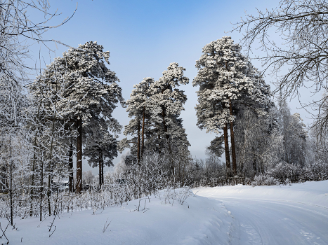 зима , иней