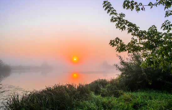 Туман на рассвете, озеро Сосновое,