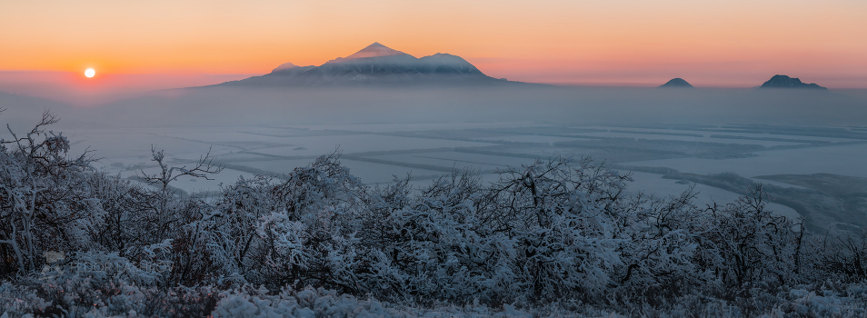 Из серии «Панорамы гор Кавминвод». Туманный вечер. На горизонте горы Бештау, Железная и Развалка.