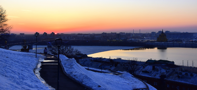 Нижний Новгород. Весна. Конец марта. Закат. Скоро начнется ледоход.