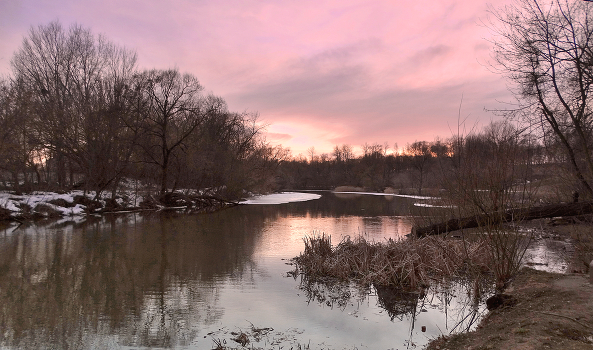 Вечер в конце марта на реке, вскрывшейся от льда