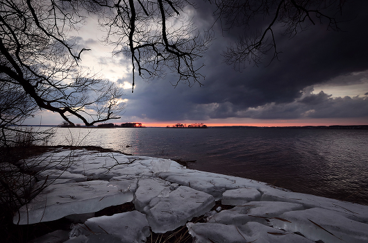 тихо тают выброшенные ветром на берег остатки ледяного панциря
