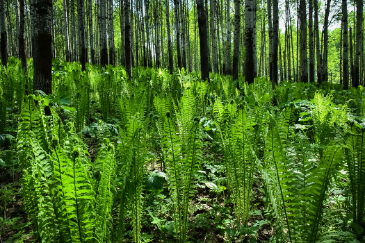Папоротник весной в лесу