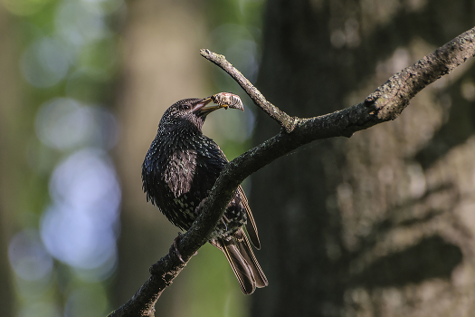 Скворец с майским жуком. Россия. Тульская область. Ленинский район. Архангельское.