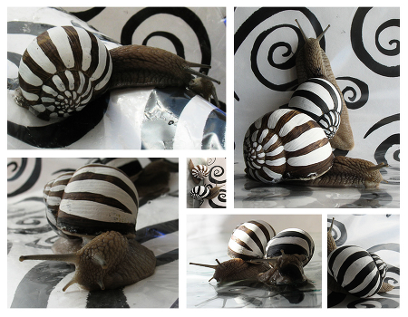 мои ручные улитки покрашенные гуашью