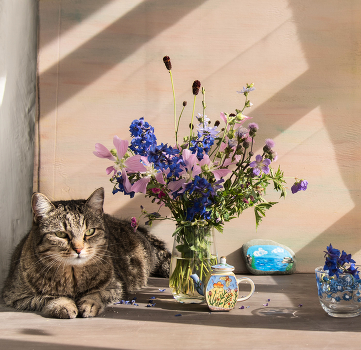 Натюрморт с кошкой :) Рыся пришла посмотреть, чем я занимаюсь и улеглась в "сторонке"