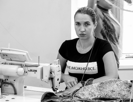На производстве.