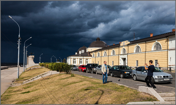 На фоне туч.