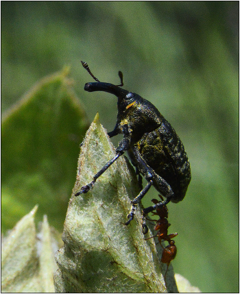 Если быть честным то, это муравьи прогоняли долгоносика с растения.