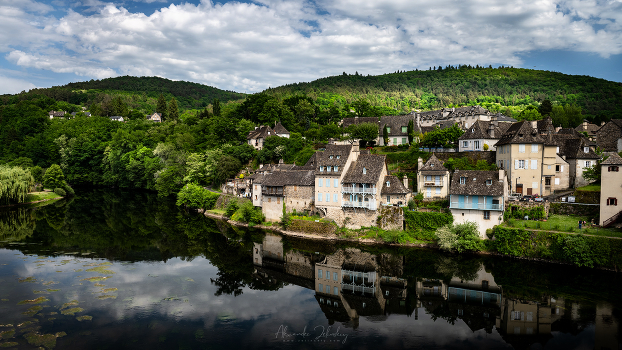 Деревня на берегу Дордони в погожий воскресный денек. Регион Дордонь и Лот, Южная Франция
