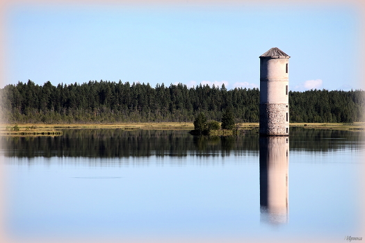 Затопленная водонапорная башня совхоза Кильбо.Это железнодорожная башня, которая находилась на месте затопленной станции старой трассы Мурманской ж.д.. Башня использовалась для заправки паровозов водой.