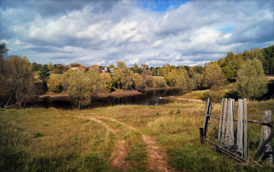 Вид на сельский пруд.