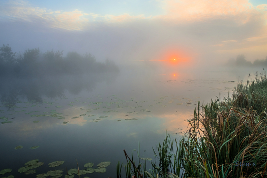 Туман и облака на рассвете.