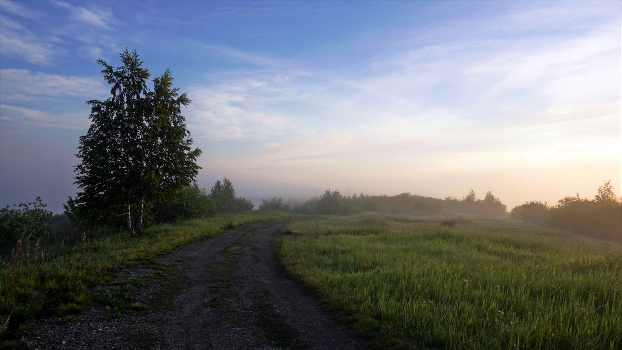 По дороге к озеру утром свежим, приправленным туманом... Южный Урал. Челябинская область