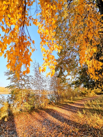 Черные тополя высажены на левом и правом берегу реки Томи. Мое внимание привлекли тени от деревьев на листве и цветовой контраст