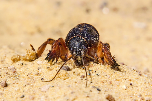 Очень трудное для фотосъёмки насекомое наровящее убежать или закопаться в землю.