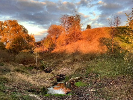 Осенний закат возле ручья