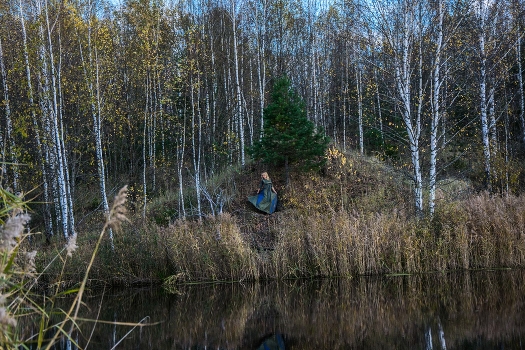 Осенний пейзаж с женщиной