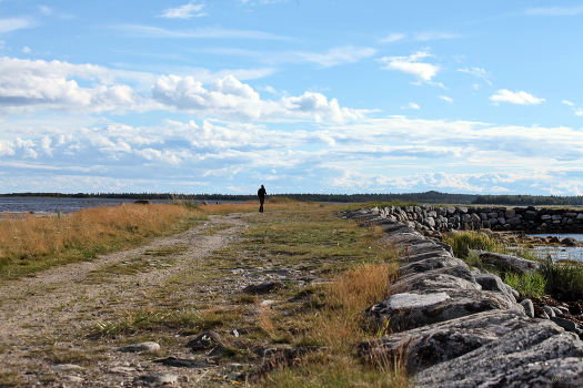 Муксулма....В 1860-х годах морской пролив между островом Большой Соловецкий и Большая Муксалма был перекрыт километровой дамбой. Сооружение спроектировал монах Феоктист. Дамба была сложена из валунов и представляла собой укрепленную по сторонам каменную дорогу(над сооружением дамб монахи трудились около 20 лет).