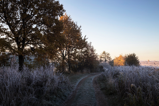 осень, утро, туман, иней
