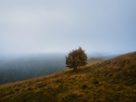 Осенний минимализм. Туманное раннее утро в Кабардино-Балкарии.