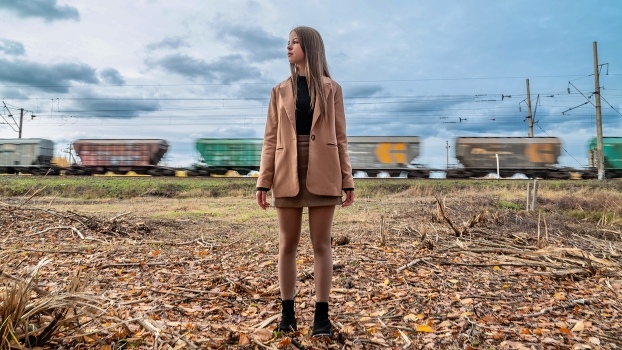 портрет на фоне товарного состава